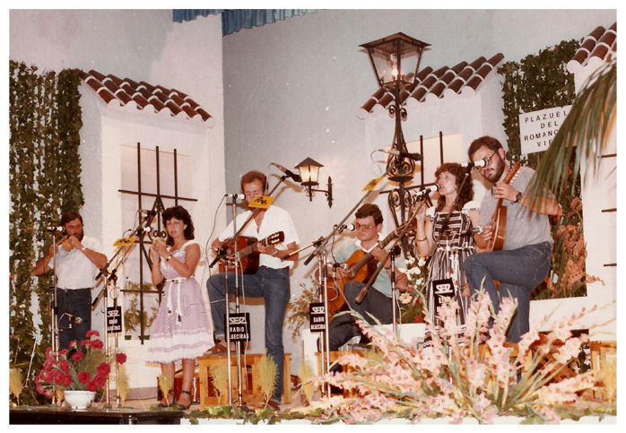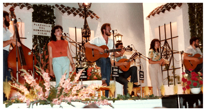 En el Festival Folk de Tarifa (Cádiz), "La Braña" consiguió el Primer Premio al Mayor Interés Tradicional por el Tema "La Peregrina". Aquellos días en tierras gaditanas fueron inolvidables para nosotros. En las fotografías se ve al grupo actuando en la semifinal y en la final respectivamente del Festival. Guzmán y placa fueron los trofeos obtenidos. La foto inferior fue tomada momentos después de la entrega del premio en la repisa de una de las ventanas de la sala.