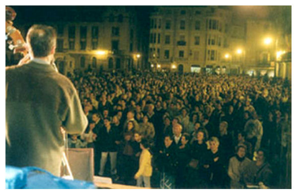 La Plaza de la Catedral o Plaza de Regla es un lugar bellísimo para actuar, aunque terriblemente frío, incluso a finales de junio. Nuestro público, siempre fiel, está dispuesto a combatir el frío corporal con el calor del entusiasmo y la participación. Nunca podremos agradecérselo suficientemente. La fotografía fue tomada en el concierto del 26 de junio de 1999.