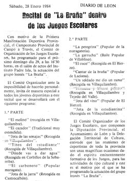 El Comité Organizador de los Juegos Escolares, que componen la Diputación Provincial, el Ayuntamiento de León y la Delegación Territorial de Cultura, entiende que las reuniones de deportistas de toda la provincia son unas magníficas ocasiones dado el espíritu eminentemente formativo de los Juegos, para las actividades de tipo cultural y este es el motivo por el que se ha programado la actuación del grupo leonés "La Braña".