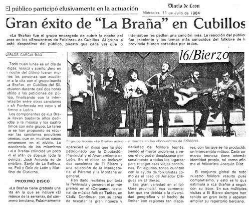 "La Braña" fue el grupo encargado de cubrir la noche del lunes en los "Encuentros de Folklore" de Cubillos. Al grupo le costó despedirse del público, puesto que cada vez que lo intentaban les pedían una canción más. La reacción del público fue excelente y los temas más conocidos del folklore de la provincia fueron coreados por todos.