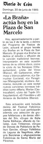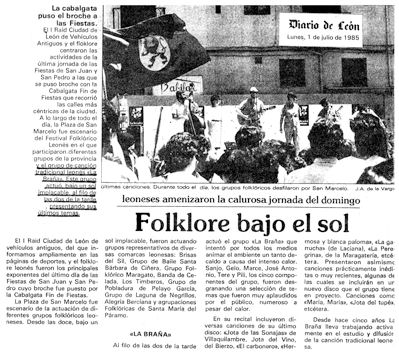 Al filo de las dos de la tarde actuó el grupo "La Braña", que intentó por todos los medios animar el ambiente un tanto decaído a causa del intenso calor. Sanjo, Gelo, Marce, José Antonio, Tere y Pili, los [seis] componentes del grupo, fueron desgranando una selección de temas que fueron muy aplaudidos por el público, numeroso a pesar del calor.