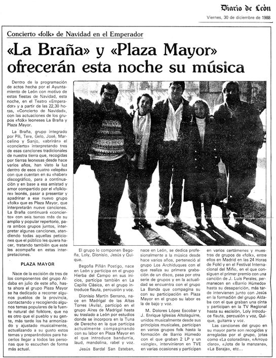 "LA BRAÑA" Y "PLAZA MAYOR" OFRECERÁN ESTA NOCHE SU MÚSICA