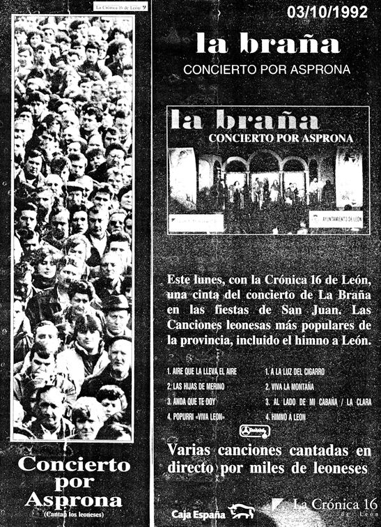 lunes, con La Crónica 16 de León, una cinta del concierto de La Braña en