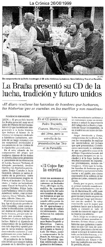 El grupo folk leonés La Braña presentó ayer en el patio del Palacio de los Guzmanes el CD que ha dedicado íntegramente a la lucha leonesa, que incluye el himno de la misma y un romancero dedicado a históricos luchadores, además de un largo romance con los campeones provinciales y los ganadores de los trofeos de la regularidad ya celebrados.