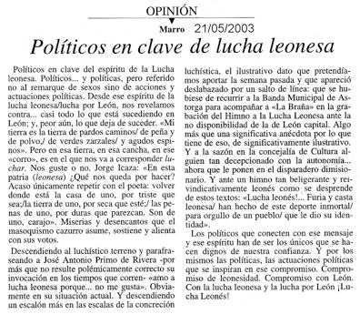La Crónica de León 23/08/1999 Diario de León 21/05/2003
