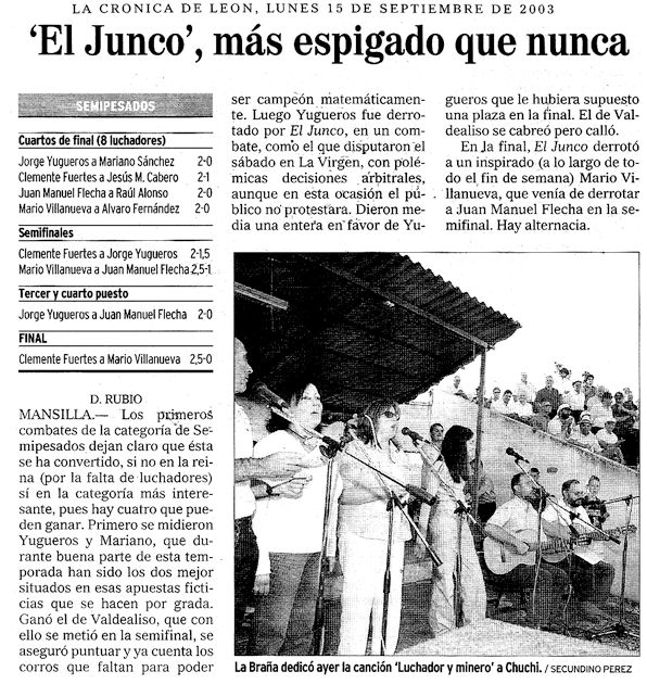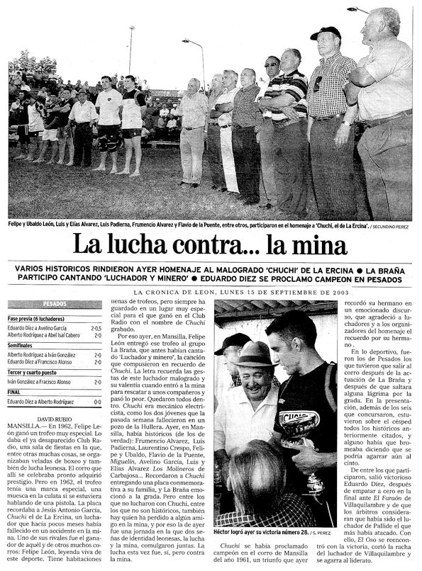 Chuchi se había proclamado campeón en el corro de Mansilla del año 1961, un triunfo que ayer recordó su hermano en un emocionado discurso, que agradeció a luchadores y a los organizadores del homenaje en recuerdo por su hermano.