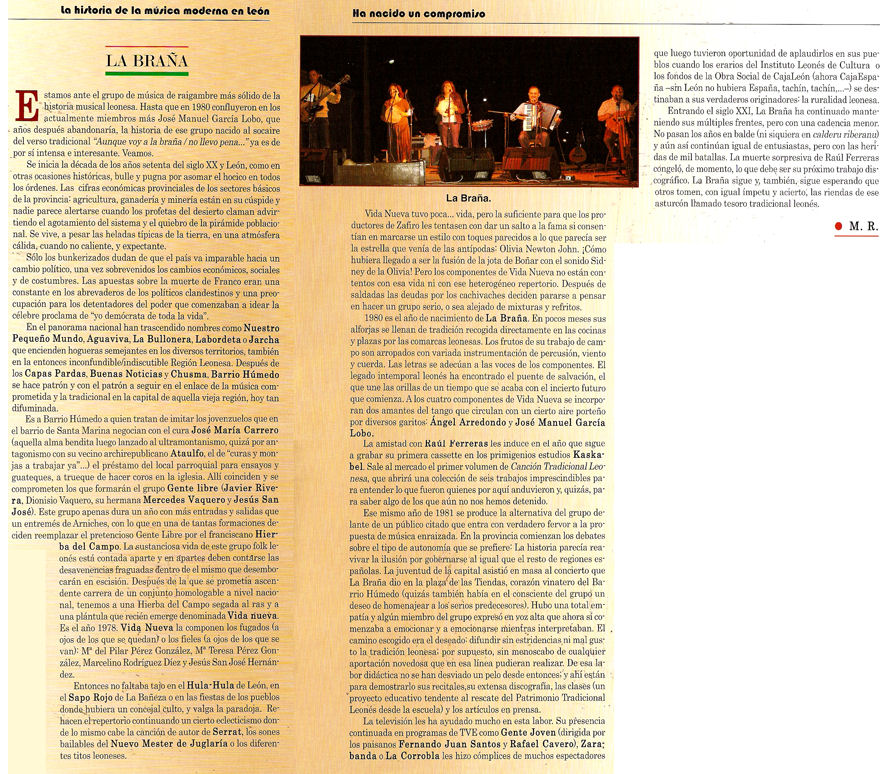 Estamos ante el grupo de música de raigambre más sólido de la historia musical leonesa. Hasta que en 1980 confluyeron en los actualmente miembros más José Manuel García Lobo, que años después abandonaría [*], la historia de ese grupo nacido al socaire del verso tradicional "Aunque voy a la braña / no llevo pena..." ya es de por sí intensa e interesante. Veamos.