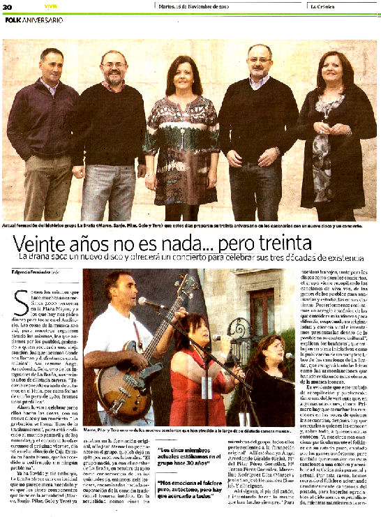 "Somos los mismos que hace muchos años metimos 7.000 personas en la Plaza Mayor, y a los que hoy nos piden dinero para tocar en el Auditorio. Las cosas de la música son así, pero nosotros seguimos siendo los mismos, los que andamos por los pueblos, grabando a quien recuerda una vieja canción, los que tocamos donde nos llaman y disfrutamos con la música". Así resume Ángel Arredondo, Gelo, uno de los integrantes de la Braña, sus treinta años de dilatada carrera. "Todavía recuerdo cuando debutamos en el Hula, por estas fechas de otoño pero de 1980, éramos unos pardillos".