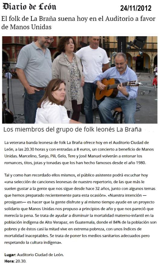 EL FOLK DE LA BRAÑA SUENA HOY EN EL AUDITORIO A FAVOR DE MANOS UNIDAS