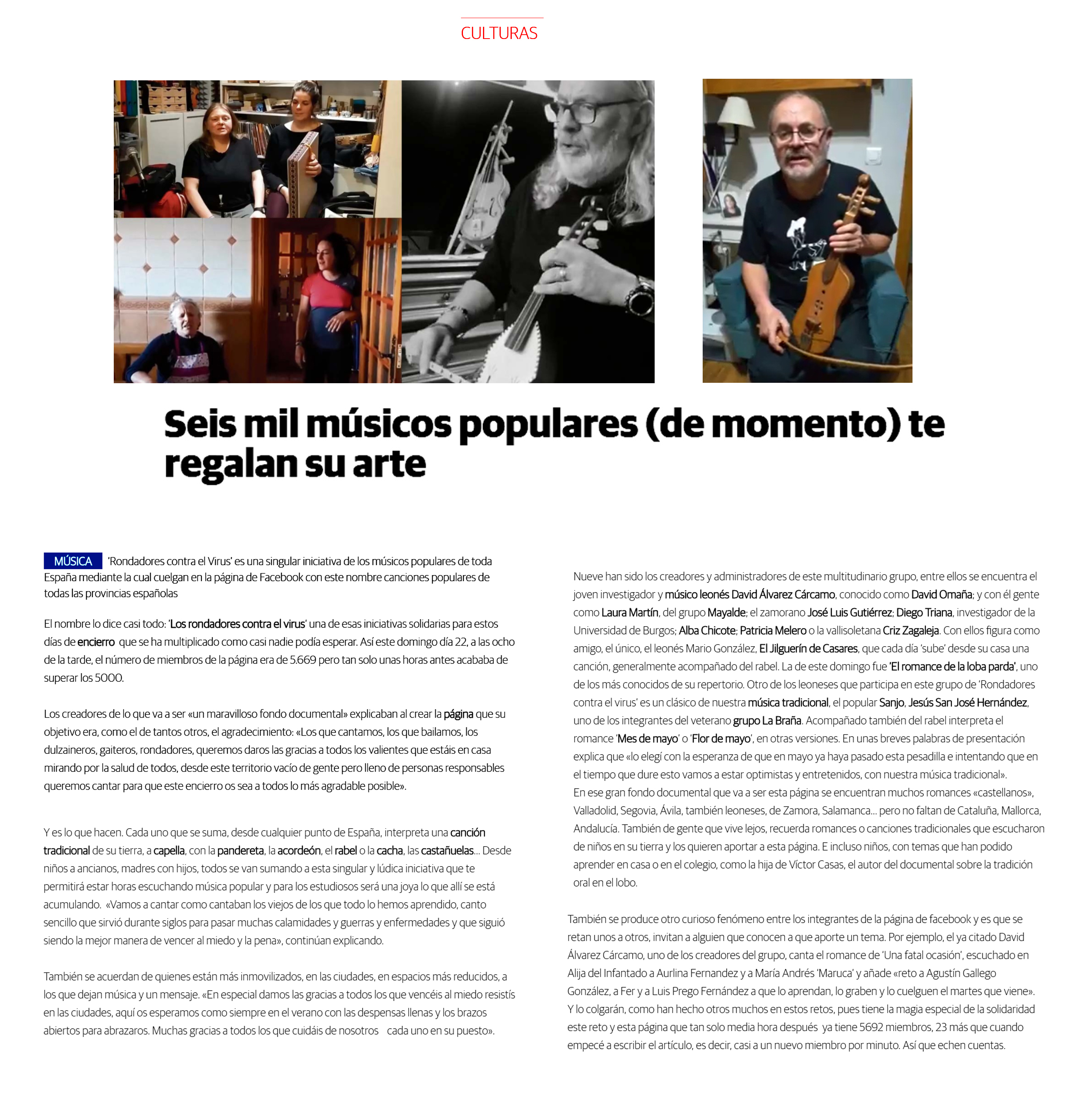 músicos populares de toda España mediante la cual cuelgan en la página de