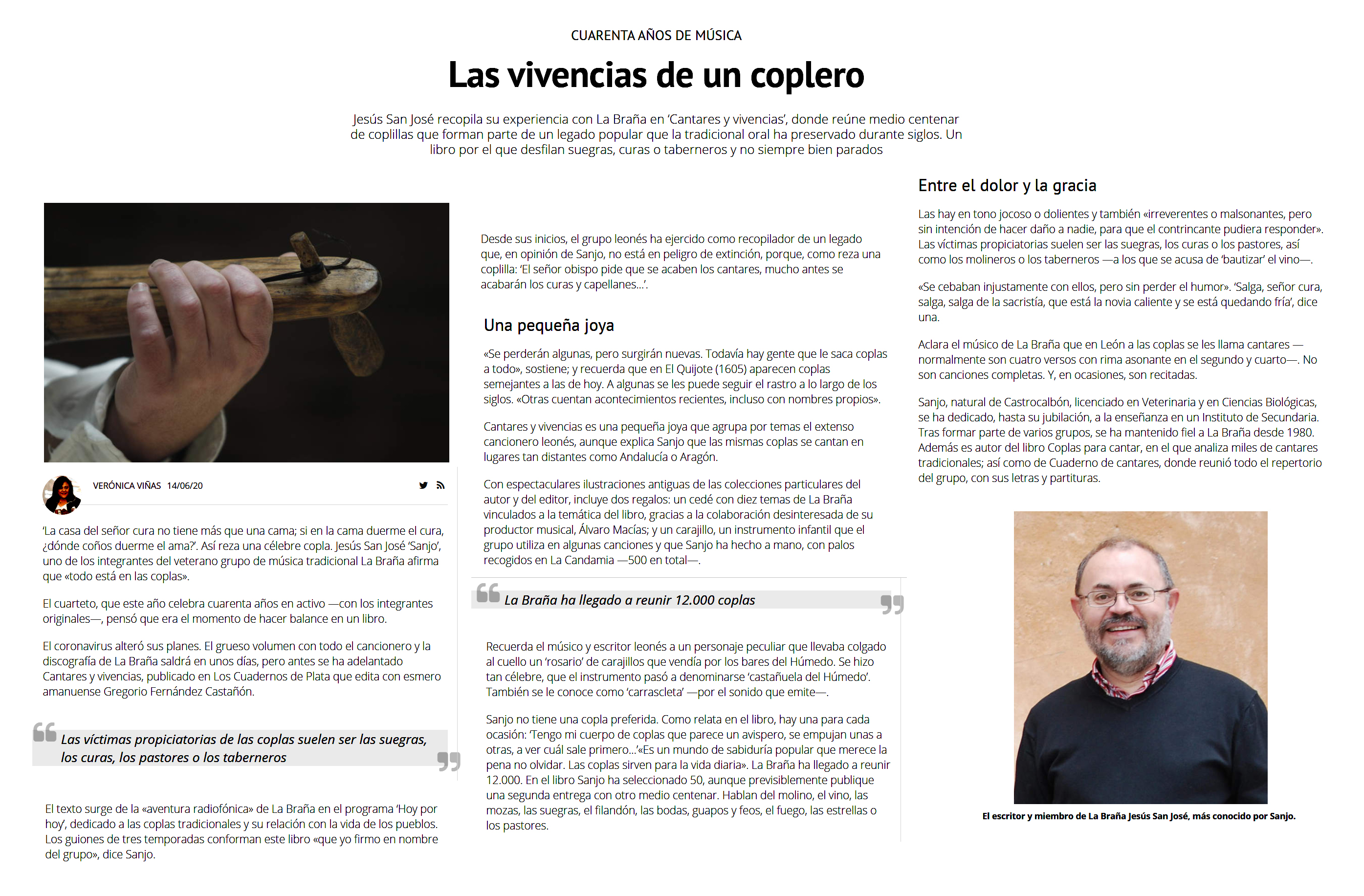 mantenido fiel a La Braña desde 1980. Además es autor del libro Coplas