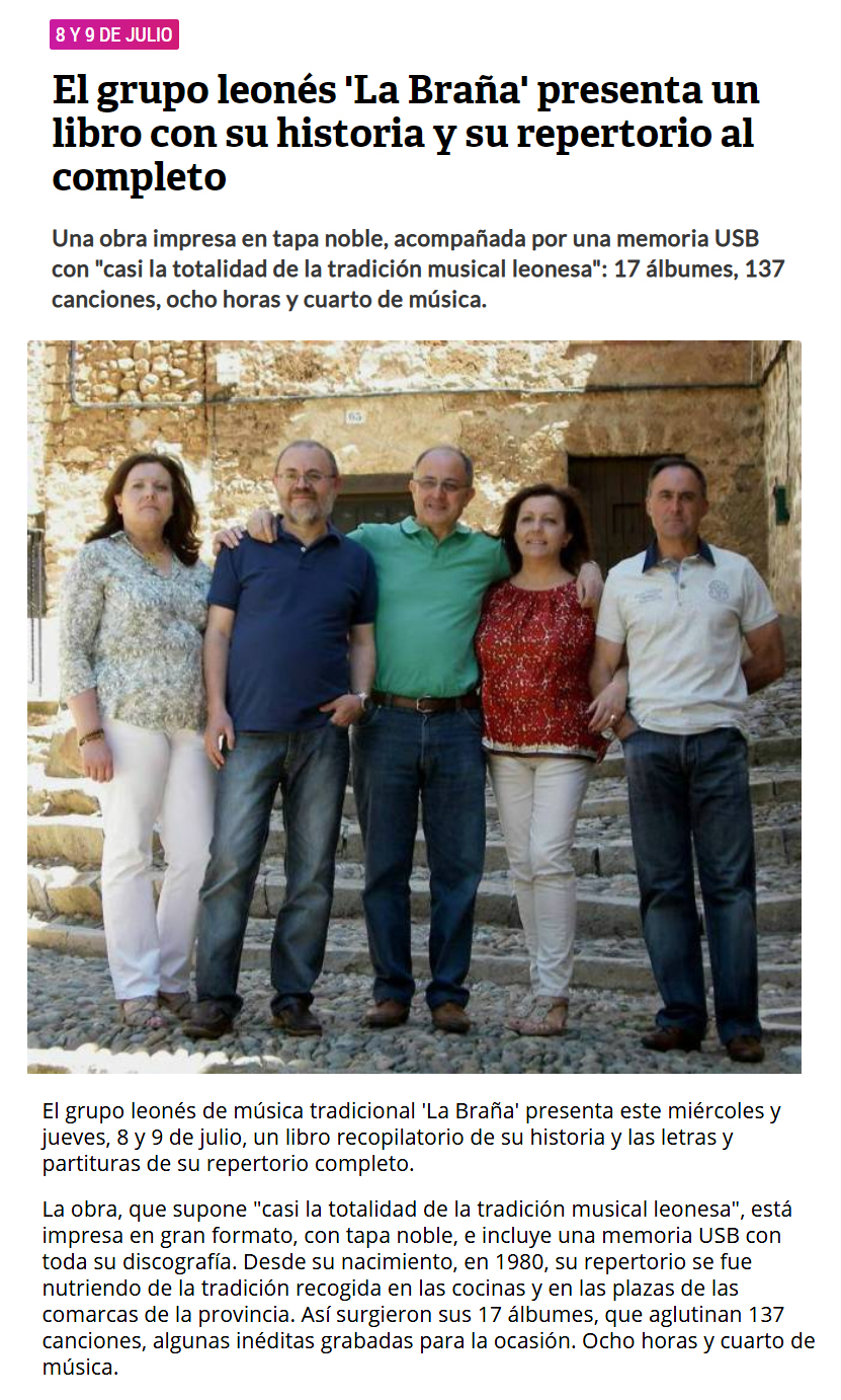 EL GRUPO LEONÉS 'LA BRAÑA' PRESENTA UN LIBRO CON SU HISTORIA Y SU