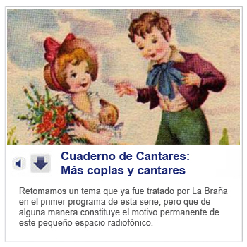 Desde el 2 de septiembre de 2013, por invitación de Chechu Gómez, nuestro Cuaderno de Cantares inició una nueva etapa en las ondas radiofónicas, dentro del programa HOY POR HOY LEÓN, de la Cadena SER. Todos los lunes, poco antes de la una del mediodía, tenemos un pequeño encuentro para hablar del tema que tanto nos gusta: nuestras coplas y cantares tradicionales.