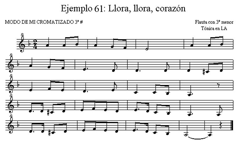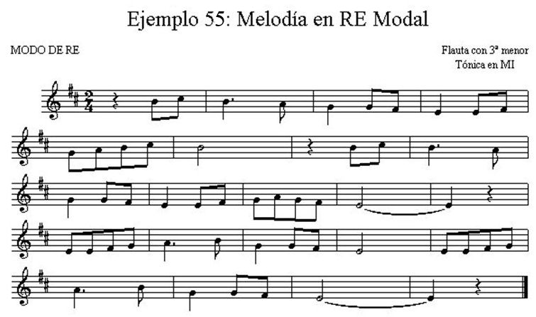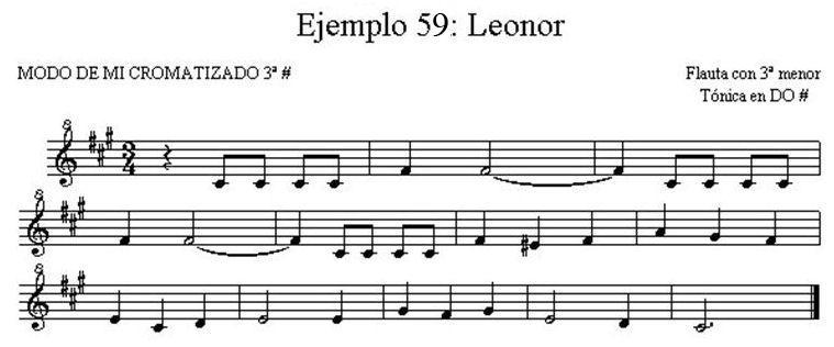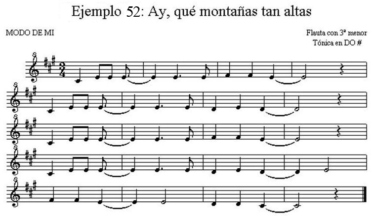 Este modo, difícil de encontrar en nuestro folklore, al igual que con la flauta en modo de SOL, requiere utilizar la tónica en DO#